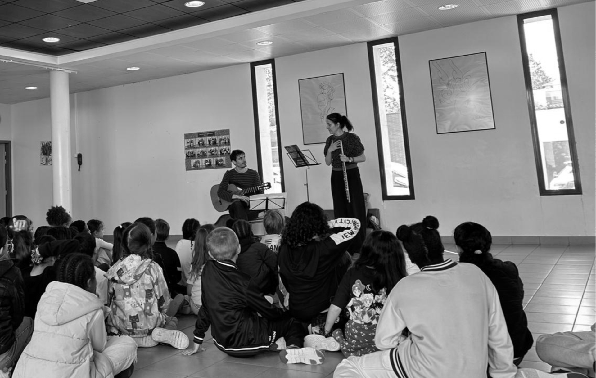 À l'école de Coussay-les-Bois, découverte des instruments de musique par un voyage musical porté par le fil conducteur des rythmes de danses du monde.
